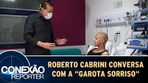 Roberto Cabrini conversa com a "Garota Sorriso" do GRAAC