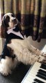 Dog Wearing Elegant Costume Plays Piano With Paws