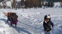 -Mom and Son Play With Snow in Indias Heaven on Earth at Kashmir