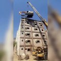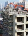 excavator on high building working