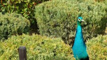 Blue peacock in a garden