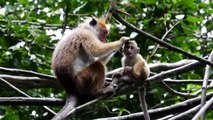 Mother and baby monkey in the forest