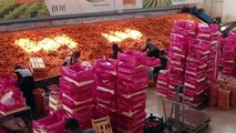 - Türkiye'nin havuç ihtiyacının yaklaşık yüzde 65'ini karşılayan Konya’da, üretim ağı her geçen yıl genişlemeye devam ediyor. Hasadın bu yıl zamanında yapıldığını söyleyen üreticiler, yıl boyunca aşamalı söküm sayesinde birçok ülkeye ürettikleri havuçları gönderiyor. Konya’nın merkez Meram ilçesine bağlı 6 bin nüfuslu Kaşınhanı Mahallesinde Türkiye’nin havuç ihtiyacının yaklaşık yüzde 65’i karşılanıyor. Çiftçiler, ekimini yaptığı havuçları yaklaşık 120 gün boyunca itinalı bir şekilde hem suluyor hem de bakımı yapıyor. Temmuz ayının ilk haftasında başlayan havuç söküm işlemiyle yoğun bir çalışma temposu devam ediyor. Tarladan makineler yardımıyla sökümü yapılan havuçlar, buradan traktörlerle fabrikaya getirilerek yıkama havuzuna dökülüyor. Burada yaklaşık yarım saatlik bir işlemin ardından taşıma bantlarıyla tezgaha dökülen ürünler fabrikada bulunan yaklaşık 45 kişilik bir ekip tarafından seçilerek torbalanıyor. Tek tek seçilen havuçlar, paketlenerek satışa sunuluyor. Yıllardır bölgede havuç üretimi yapan Kaşınhanı Mahallesi Muhtarı ve havuç üreticisi Mehmet Çetin, “Havuç üretimi 1983’ten beri, buralarda ise 2000 yılından sonra daha da fazlalaştı. Türkiye genelinde ise yüzde 65 ile 70 arasında tekabül ediyoruz. Havuç ekimi Şubat 15 gibi başlar ama Ocak ayında eken arkadaşlarımız da var, tül altı ekeriz. Daha sonra ise normal ekimler olarak Nisan ayında ekimi yapılır bu şekilde ekimler kademe kademe yapılıyor. Şimdi 150 dönüm ekiyorsak 20 dönümünü tül altı ekiyoruz. Bu ekimleri ise biz dokuzuncu aya kadar sökülecek şekilde ekimini tamamlarız. Havucun da tazeliğini belirleyecek zamanları var. İnsan nasıl doğar genç olur yaşlanır, havuç da bu şekilde belirli günleri var. 120 günde tam olgunlaşır, 120 günden sonra ise kendinden yemeye başlar diyebiliriz, yani yaşlanır” dedi. "Rusya, Gürcistan, Azerbaycan, Romanya, Bulgaristan ve Arap ülkelerinin çoğuna gidiyor" Üretilen havuçların gönderildiği noktaları anlatan havuç üreticisi Çetin, “Biz ürünlerimizi hemen hemen bütün ülke pazarlarına gönderiyoruz. Rusya, Gürcistan, Azerbaycan, Romanya, Bulgaristan ve Arap ülkelerinin çoğuna gidiyor. Tabii yurt içine de gidiyor ama tabii burada pazar alanı biraz daha ağır. Bizim hedefimiz örnek veriyorum ben kendim 140 dönüm havuç ektim bu süreçte, ben seneye de 140 dönüm ekebilmeyi hedefliyorum. Fazla açılmadan çünkü açıldıkça masraflar çoğalıyor. Buğday, fasulye, baklagiller ve meyve olsun hepsine teşvik veriliyor ama bu zamana kadar biz havuca hiç teşvik almadık. Oysa ki tarım üretiminde en ağır maliyetli olan ürünlerden birisi ise havuç. Devletimizden tek isteğimiz havuca teşvik verilmesi” ifadelerini kullandı. Havuç işinde işçi bulmakta zorlandıklarını ifade eden Mehmet Çetin, tarımda Suriyeli ve Afganlıların çalıştığını belirtti.