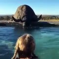 Elefante resolve saciar sede numa piscina de hotel cheia de turistas