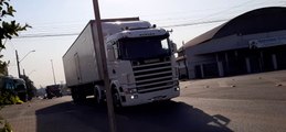 SCANIA R 450 PRETO CARRETA BAÚ 6 EIXOS TRANS JOANA