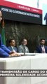 Sindicatos protestam em posse do novo governador Mateus Simões