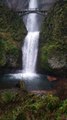 A women walk in waterfall