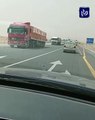 إخماد حريق صهريج محمل بالمواد الخطرة على طريق العقبة