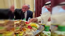 Çubuklarıyla ünlü Japonya'nın Suudi Arabistan Büyükelçisi katıldığı davette zor anlar yaşadı. Suudi Arabistan'ın Shaqra Valisi Adel Al-Bawardi, Japon Büyükelçi Iwai Fumio'ye kendi kültürlerinde yer alan elle pilav yemeyi öğretti. Büyükelçinin, pilavı bu şekilde yemekte zorlandığı ve döktüğü görüldü. Suudi Arabistan'ın Shaqra Valisi Adel Al-Bawardi ile Japon Büyükelçi Iwai Fumio'nun yemek yerken çekilen görüntüleri gündem oldu. Videoda, çubuklarıyla pilav yemeleri ünlü olan Japonya'nın Suudi Arabistan Büyükelçisi Fumio'nun Suudi kültüründe yer alan "Elle pilav yeme" deneyimini tattığı görülüyor. Ancak Fumio, bir kaç denemeden sonra başarılı olabildi. RİYAD'A BAĞLI SHAQRA'YI ZİYARET ETTİSuudi Arabistan'ın Japonya Büyükelçisi Iwai Fumio, başkent Riyad'a bağlı Shaqra bölgesini ziyaret etti. Büyükelçi Fumio, ziyaret sırasında Shaqra Valisi Adel Al-Bawardi tarafından öğle yemeğinde ağırlandı. Haber