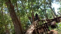 Footage filmed by James Stone shows a BMX rider attempting to pull off an incredibly risky stunt and... well, failing at it.