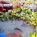 Amazing fish hunting on pond