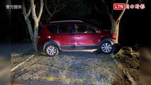 少林功夫停車?轎車卡兩樹中間 真相是「醉拳」慘了…