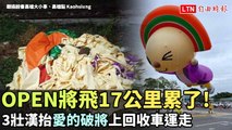 「OPEN將」飛17公里累了 3壯漢抬上回收車運走(讀者提供/翻攝畫面)