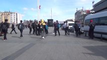Taksim Meydanı'nda dans edip video çeken YouTuberlara yerli ve yabancı turistler yoğun ilgi gösterdi. 5 genç kızın etrafına toplanan kalabalık, dans gösterisi videoya çekmek için birbirleriyle tartıştı. Taksim'de Cumhuriyet Anıtı önünde toplanan YouTuberlar video çekmek amacıyla dans etmeye başlayınca Taksim Meydanı'nı gezmek için orada bulunan yerli ve yabancı turistler cep telefonlarını alarak dansçı gençlerin etrafında kalabalık oluşturdu. ÇEKEBİLMEK İÇİN TARTIŞTILARDans eden kızların video çekimi sırasında kadraja giren bir vatandaş ile videoyu çeken görevli arasında ise tartışma çıktı. Kısa süren tartışma sonrasında videonun çekilmesinin ve dans gösterisinin bitmesinin ardından gençler yoğun ilgi sonrasında meydandan uzaklaştı. Haber
