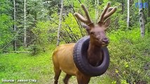 Plus d'infos sur : https://www.demotivateur.fr/animaux/piege-depuis-deux-ans-avec-un-pneu-autour-du-cou-un-wapiti-a-ete-libere-par-des-gardes-forestiers-26412