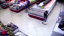 Peixe vivo salta para cesto de cliente em supermercado