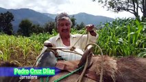 Campesino abona su milpa en Oaxaca