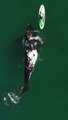 greates whale playing with human