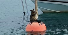 Australie : un opossum, terrifié par l'eau et réfugié sur une bouée, a été sauvé par un plongeur