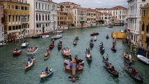 This 39-Foot Violin-Shaped Boat Floated Down Venice's Grand Canal With a String Quartet on Board