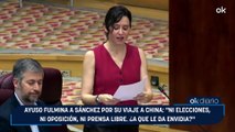 Ayuso fulmina a Sánchez por su viaje a China: "Ni elecciones, ni oposición, ni prensa libre. ¿A que le da envidia?"