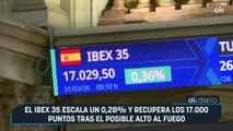 El Ibex 35 escala un 0,28% y recupera los 17.000 puntos tras el posible alto al fuego