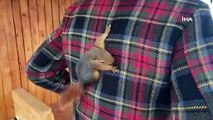Kafe işletmecisi çiftin ormanda bulduğu sincap aileden biri oldu
