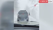 Atları ile trafiğe çıktılar, görenler şaştı kaldı Tokat'ta, Türk Bayrağı ve Göktürk Devleti Bayrağı ile trafikte ilerleyen atlılar dikkat çekti.