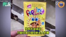 Ce chien s'est bloqué la tête dans un paquet de céréales !