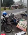 Ketika Helikopter hancurkan bangunan tidak permanen