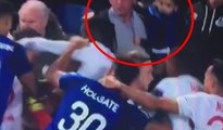 Everton - Lyon maçında kavga... Taraftar, kucağında çocuğuyla yumruk atmaya çalıştı