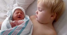 Cette petite fille rencontre sa petite soeur pour la première fois