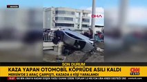 Mersin'de can pazarı: Kaza yapan otomobil köprüde asılı kaldı