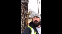 Cette maman écureuil vient sauver son petit coincé dans un arbre.. Génial!