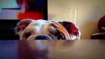 Ce chien veut à tout prix reposer sa tête sur la jambe de sa maîtresse. Il n'est pas prêt d'abandonner