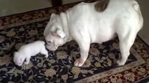 Ce bébé bouledogue fait ses premiers pas avec sa maman