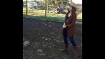 Une femme tente d'attraper un coq !