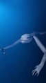 Scary frog in blue sea
