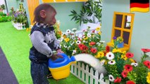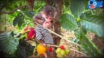 Monkey Baby Bon Bon goes to harvest fruit on the farm and plays with puppy and duckling
