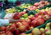 Checking red apple quality during buying in fruit shop