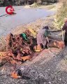 Çayda sel sularının süreklediği ağaçları toplayan vatandaş Tehlikeli ama yakacak yok