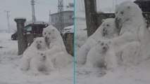 Kahramanmaraş’ta 'kar' sanatı: Kutup ayısı ailesi