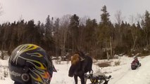 Un homme à motoneige se fait charger par un élan