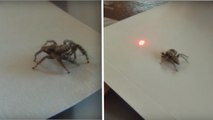 Une araignée voit le point d'un laser lumineux et a une drôle de réaction