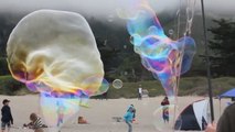 Il réalise des bulles géantes sur une plage