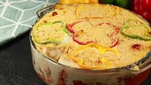 صينية بطاطس بالخضار وصوص الجبن