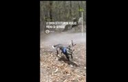 Un chien avec une caméra 360 dans la gueule