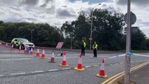 A herd of cows stops traffic on the M62