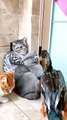 duck playing with cats