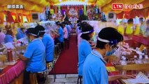 苗栗縣銅鑼鄉五福廟普度 萬盤供品搶到翻桌